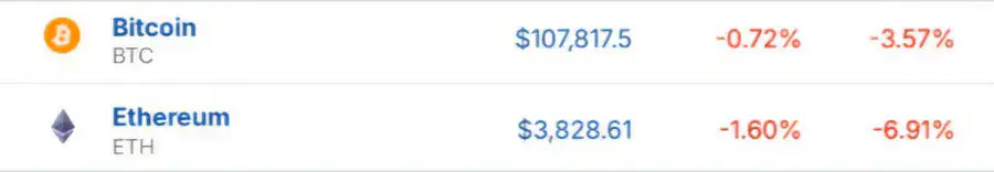 Курс Bitcoin (BTC) упал на 0,72 процента, а Ethereum (ETH) - на 1,60 процента, составив 3 828,61 доллара за одну монету. Снижение интереса инвесторов к рисковым активам связано с растущей неопределённостью в мировой экономике и увеличением торговых и геополитических рисков.