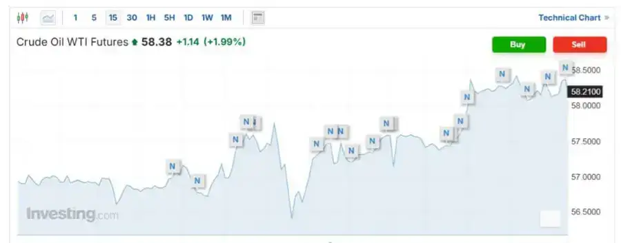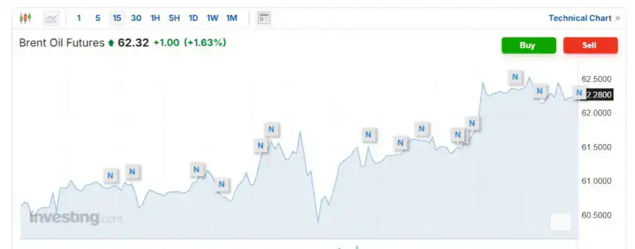 Нефть подорожала на фоне надежд на заключение торгового соглашения США с Индией и Китаем, а также из-за снижения запасов нефти в США и планов Вашингтона пополнить истощённые нефтяные резервы. Цена декабрьских фьючерсов на нефть марки Brent увеличилась на 1,63 процента, составив 62,32 доллара за баррель. Ноябрьские фьючерсы на нефть марки WTI выросли на 1,99 процента, достигнув 58,38 доллара за баррель.