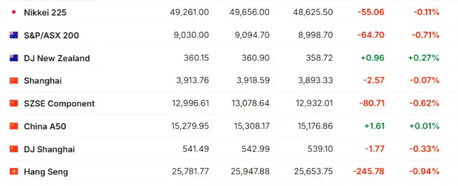 Азиатские рынки закрылись в красной зоне на фоне слабых данных по мировой торговле и неопределённости вокруг переговоров США с Китаем и Индией. Индекс Shanghai Composite снизился на 0,07 процента, Hang Seng - на 0,94 процента. В Японии индекс Nikkei 225 упал на 0,11 процента.