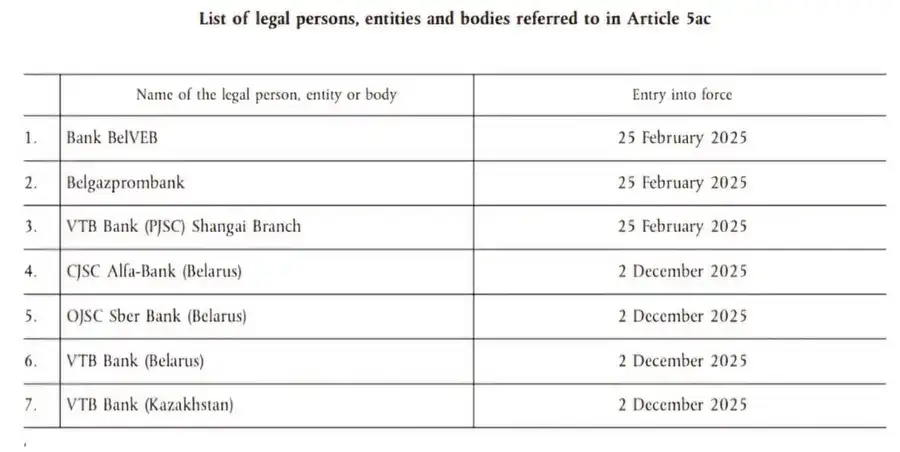 - Ограничение участия в международных операциях, особенно с использованием евро и доллара.