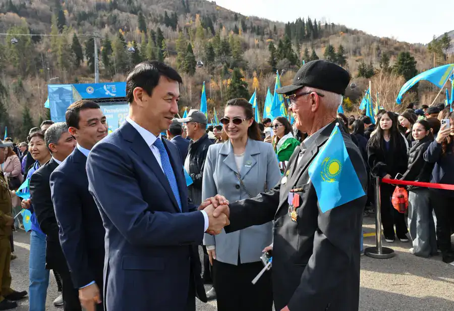 В Алматы состоялась торжественная церемония поднятия Государственного флага в честь Дня Республики. Мероприятие прошло на площадке у ледового катка "Медеу" и собрало множество участников, включая акима города Алматы Дархана Сатыбалды, общественных и культурных деятелей, депутатов маслихата, членов Общественного совета, представителей неправительственных и молодёжных организаций, известных спортсменов, а также жителей и гостей города.