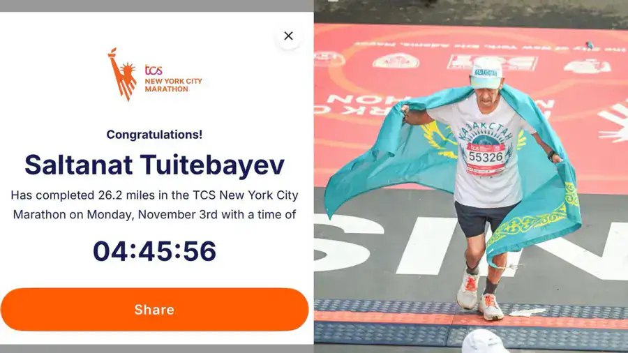 В этом году Нью-Йоркский марафон запомнился казахстанцам благодаря 80-летнему пенсионеру из Жамбылской области — Салтанату Туйтебаеву. Он показал один из лучших результатов в возрастной категории 80–85 лет, преодолев дистанцию 42,2 километра за 4 часа 45 минут 56 секунд и заняв второе место среди сверстников.