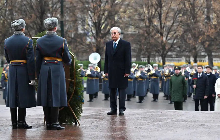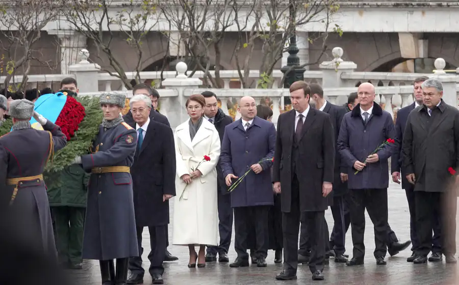 После неформальных разговоров и вечернего чая с Владимиром Путиным, Касым-Жомарт Токаев возложил венок к "Могиле Неизвестного Солдата". Этот жест памяти традиционно открывает день официальных мероприятий.