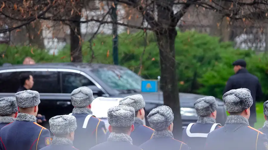 Почетный караул проходит перед казахстанской делегацией — шаги гулко звучат по площади.