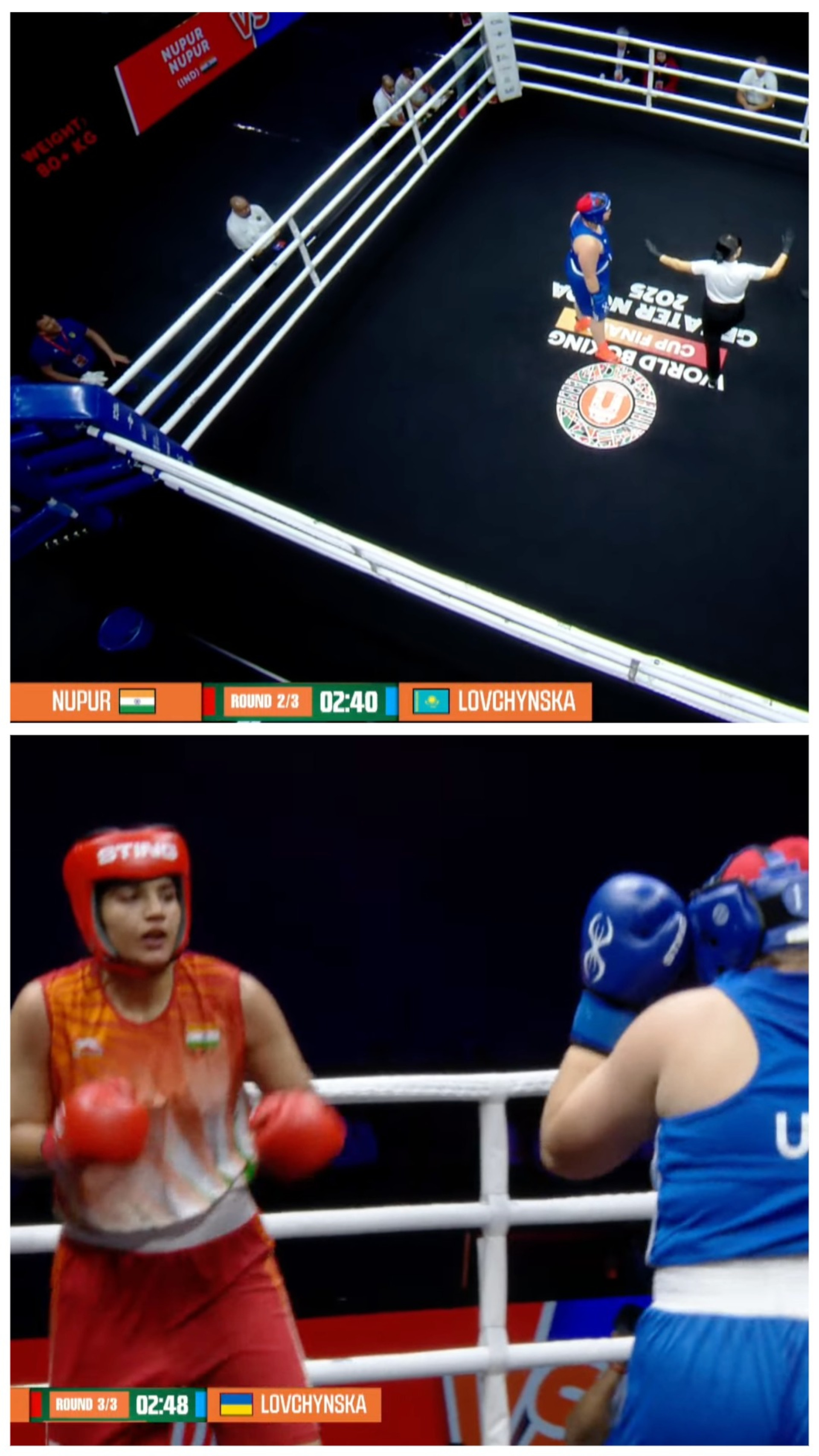 Во время финального этапа Кубка мира по боксу произошла ошибка в трансляции, когда украинская спортсменка Мария Ловчинская была представлена под флагом Казахстана. Этот инцидент произошел во время полуфинального поединка против индийской боксерши Нуруп Нуруп в весовой категории до 80 килограммов.