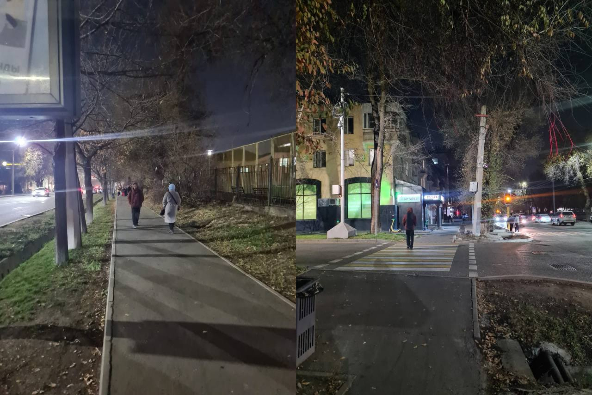Но двухстороннее освещение — всё ещё не правило для всех улиц города. Так, корреспондент заметила, что, например, на Масанчи в промежутке от Абая до Кабанбай-батыра фонари есть только на одной стороне:
