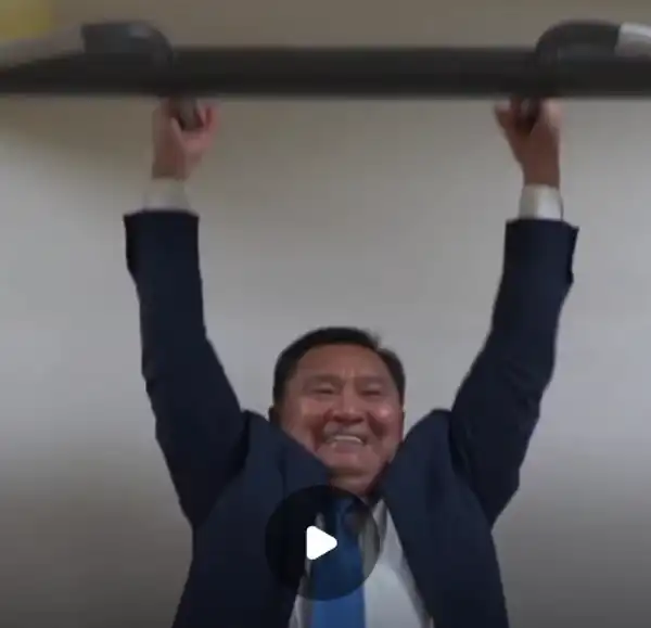 Марат Ахметжанов подтягивается. Стоп-кадр видео из соцсетей