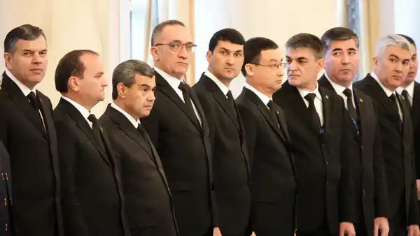 Туркменская делегация выделялась строгим черно-белым стилем, в то время как вице-премьер Байрамгуль Ораздурдыева привлекала внимание оранжевым платком.