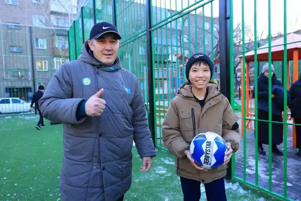 Но интереснее всего кадры, на которых Булекпаев раздаёт автографы детям, игравшим на местной спортивной площадке.