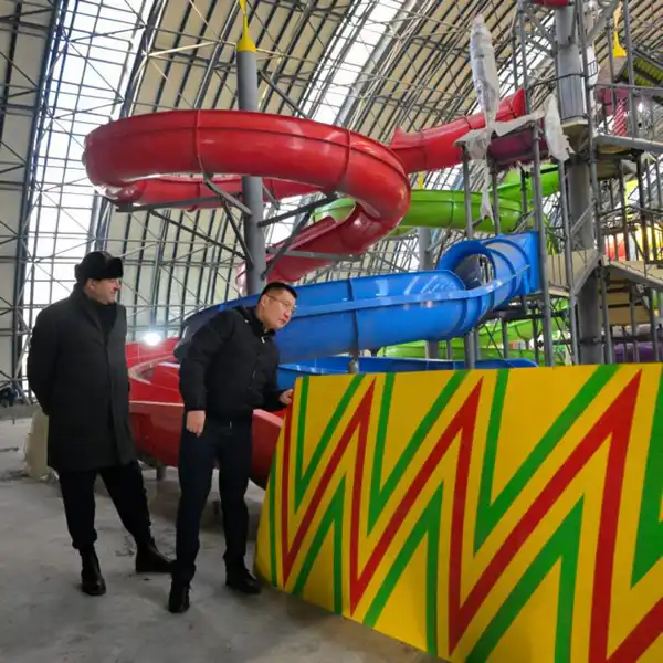 А в завершении отметим две крайне значимые поездки акима. Под конец месяца Асаин Байханов проверял строящийся аквапарк в Павлодаре, стоивший госбюджету 10 миллиардов тенге. Аким лично осмотрел построенные бассейны и горки.