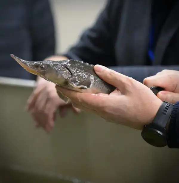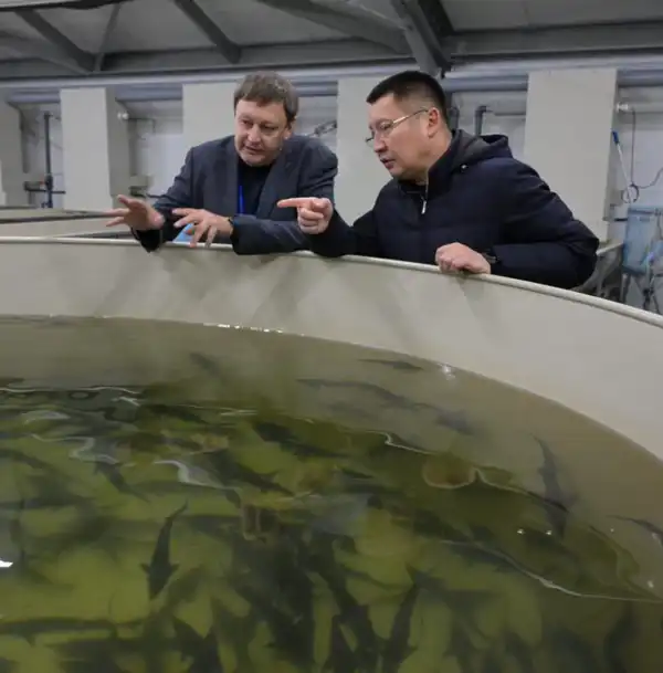 А после этого посетил местное рыбное хозяйство, которое с 2023 года занимается разведением осетра и стерляди. Тут аким тоже всё проверял крайне тщательно. Сначала вместе с ответственным сотрудником внимательно рассматривал осетровых.