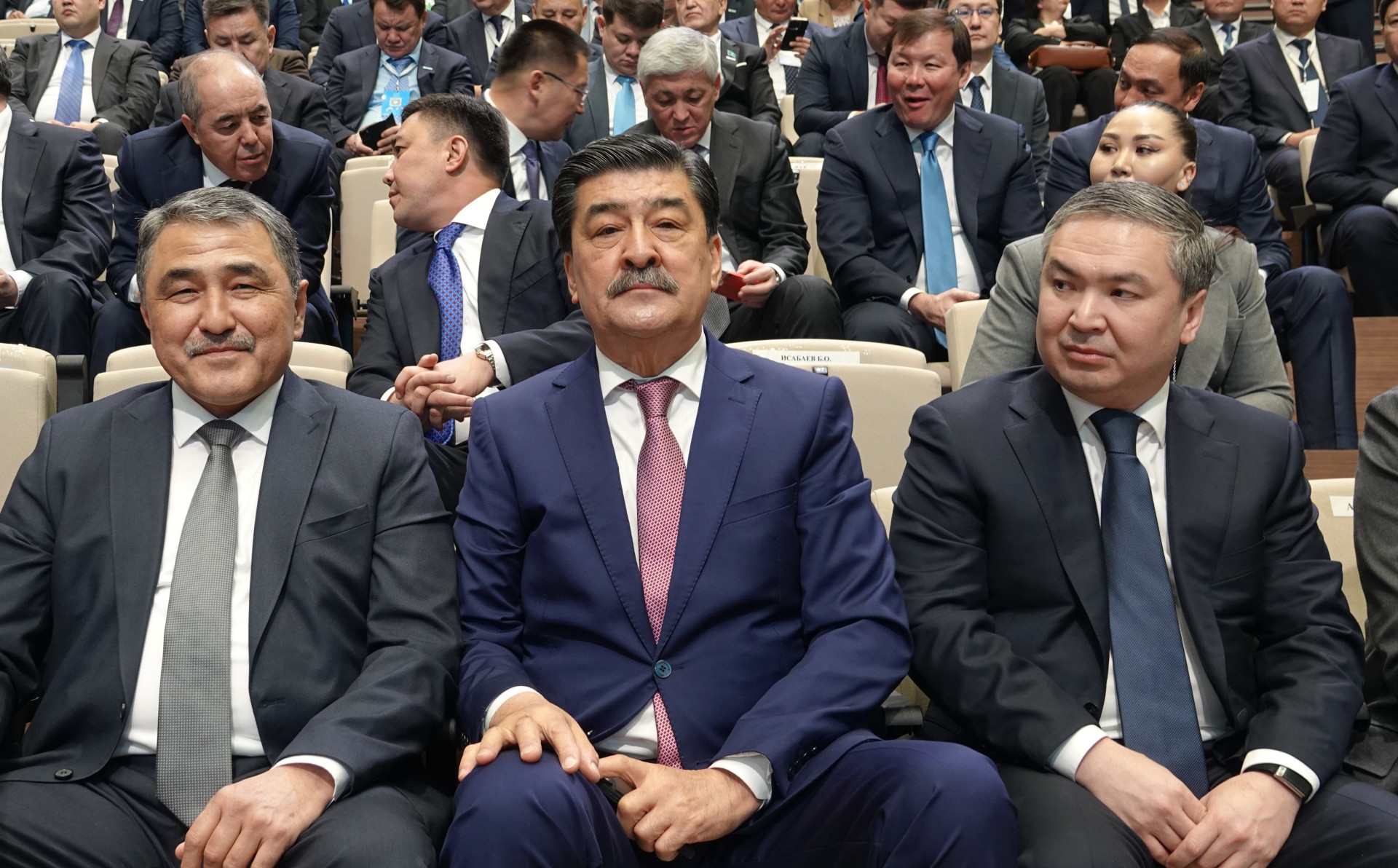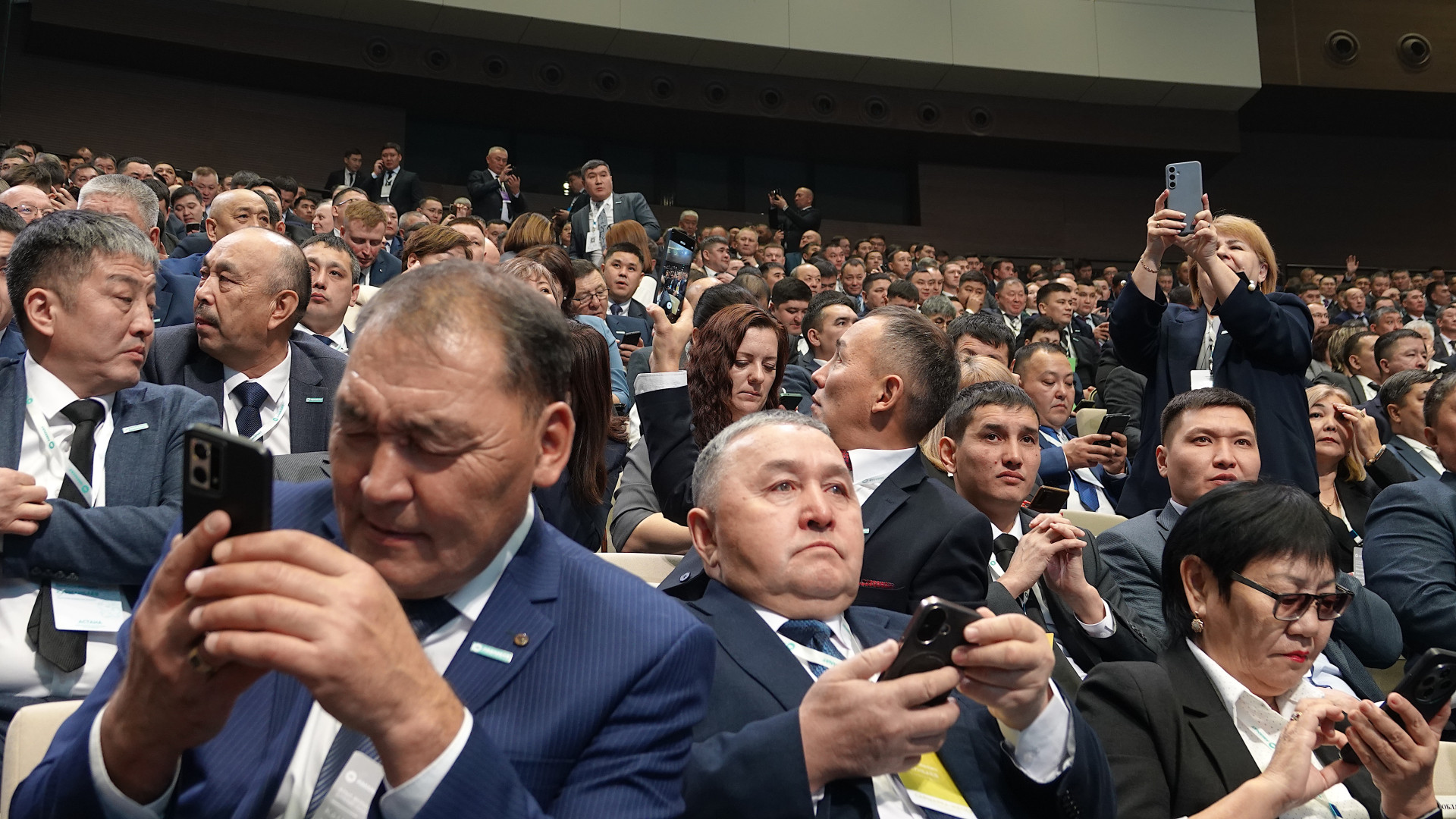 На секунду кажется, что это не форум сельских акимов, а парад костюмов-двоек, где участники соревнуются только в оттенках синего и серого.