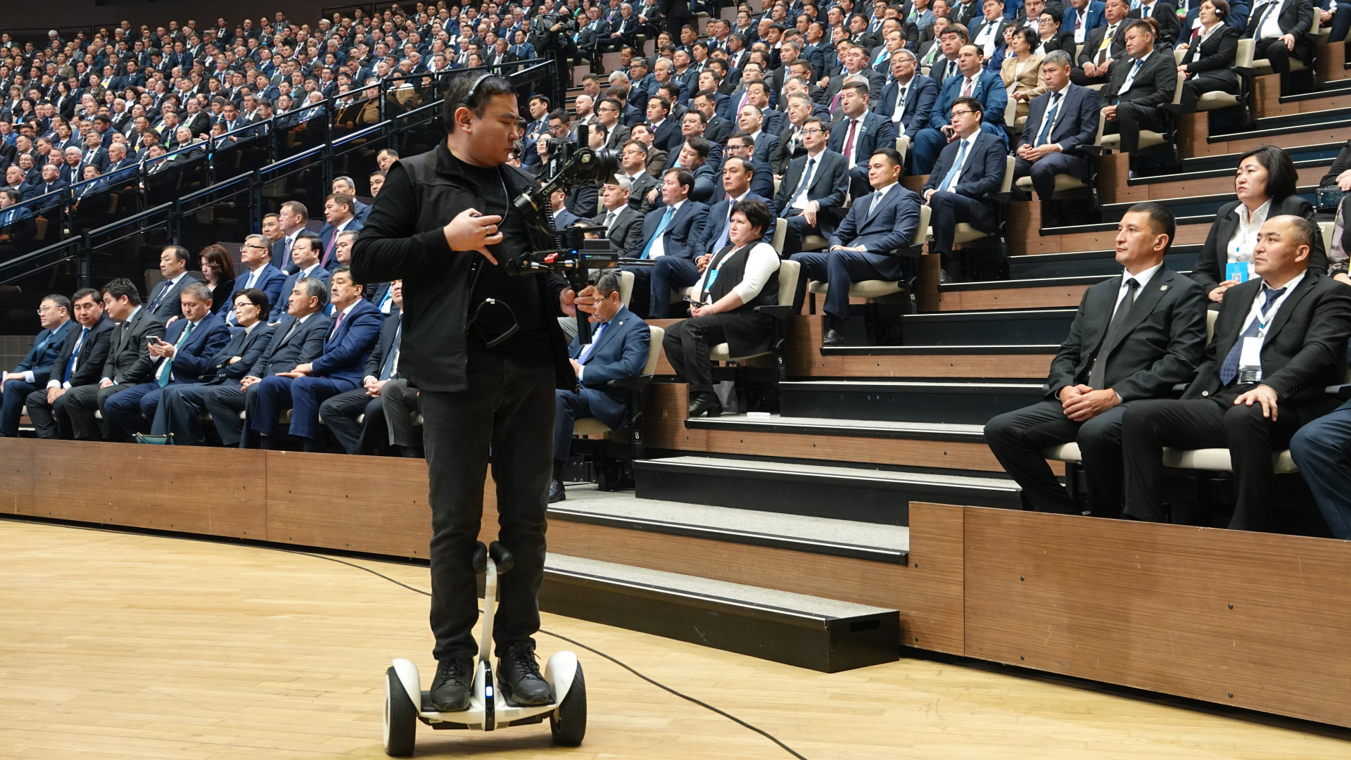 Кстати, технологиями здесь вооружены не только акимы и министры. Один из операторов плавно катится на сегвее — снимая парад костюмов, он сам становится частью парада гаджетов.