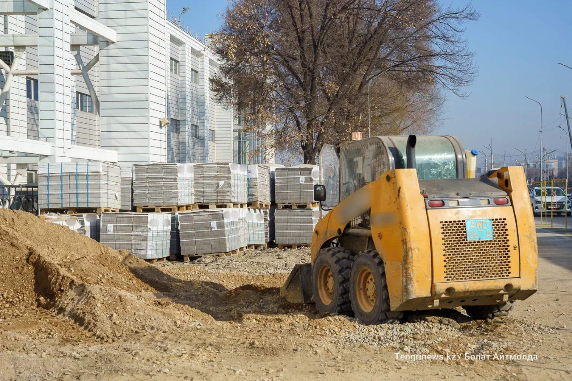 Чуть дальше, в сторону проспекта Суюнбая, тротуар пока не достроен: повсюду строительный мусор и техника. С большой долей вероятности этот участок входит в проект BRT, поскольку обновление проспекта предусматривает реконструкцию тротуаров и зелёных зон.