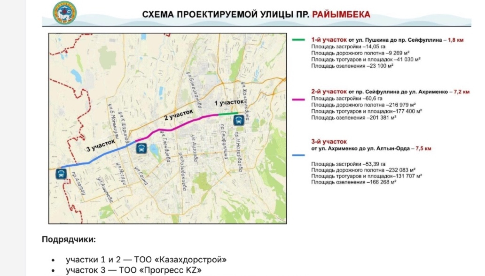 - пр. Сейфуллина – ул. Ахрименко (7,2 километра);