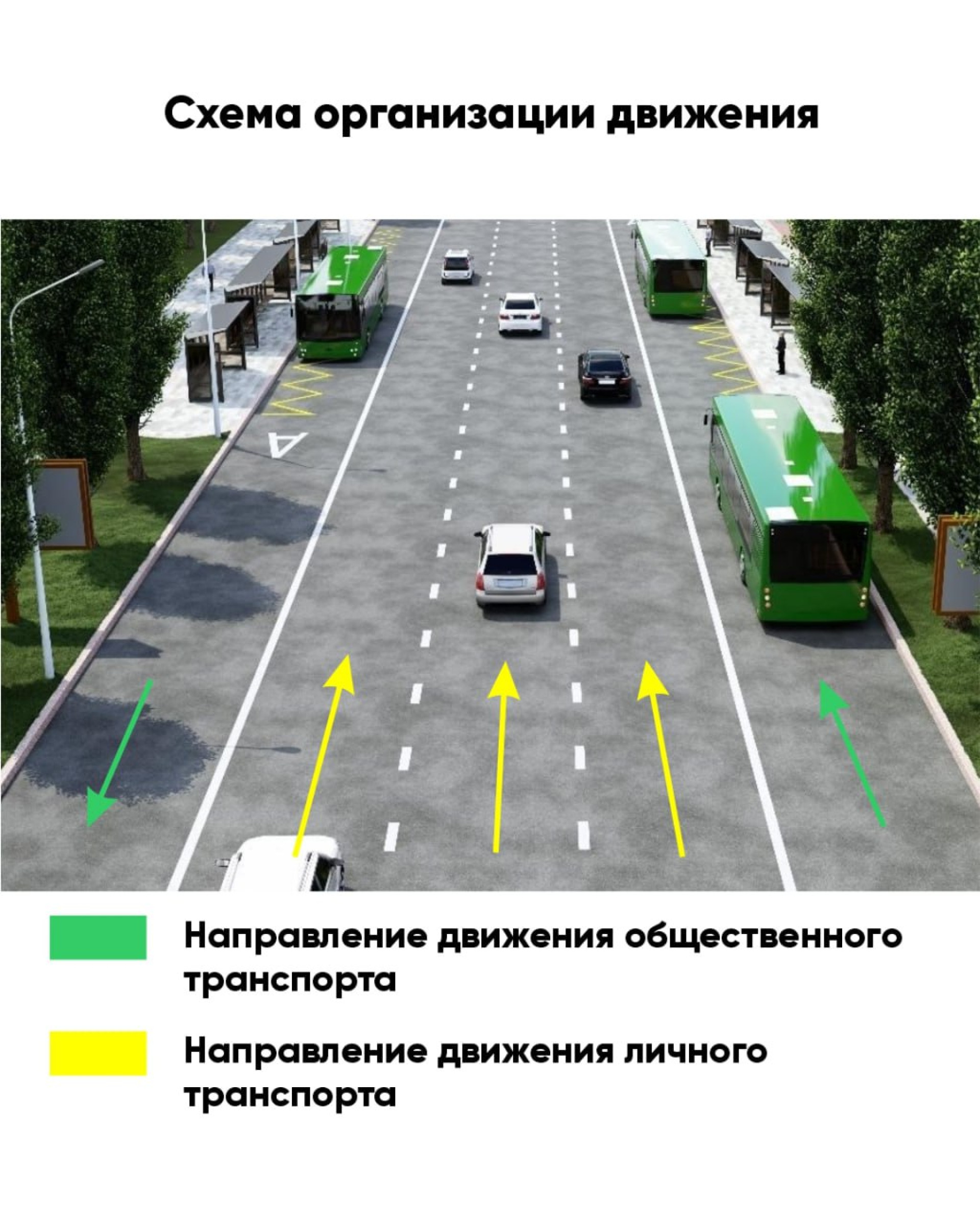 Также уточнялось, что в связи с вводом линии меняется и схема организации движения. Выделенные полосы для автобусов организованы по краям проезжей части: в северном направлении — по правой стороне, в обратном — по левой.