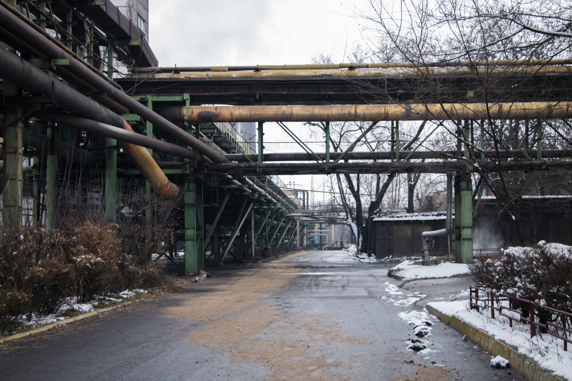 После прохождения инструктажа по безопасности и получения специальной формы, корреспондент попадает на территорию ТЭЦ. Здесь очень скользко, что, по мнению сотрудников, связано с выбросами пара из градирен.