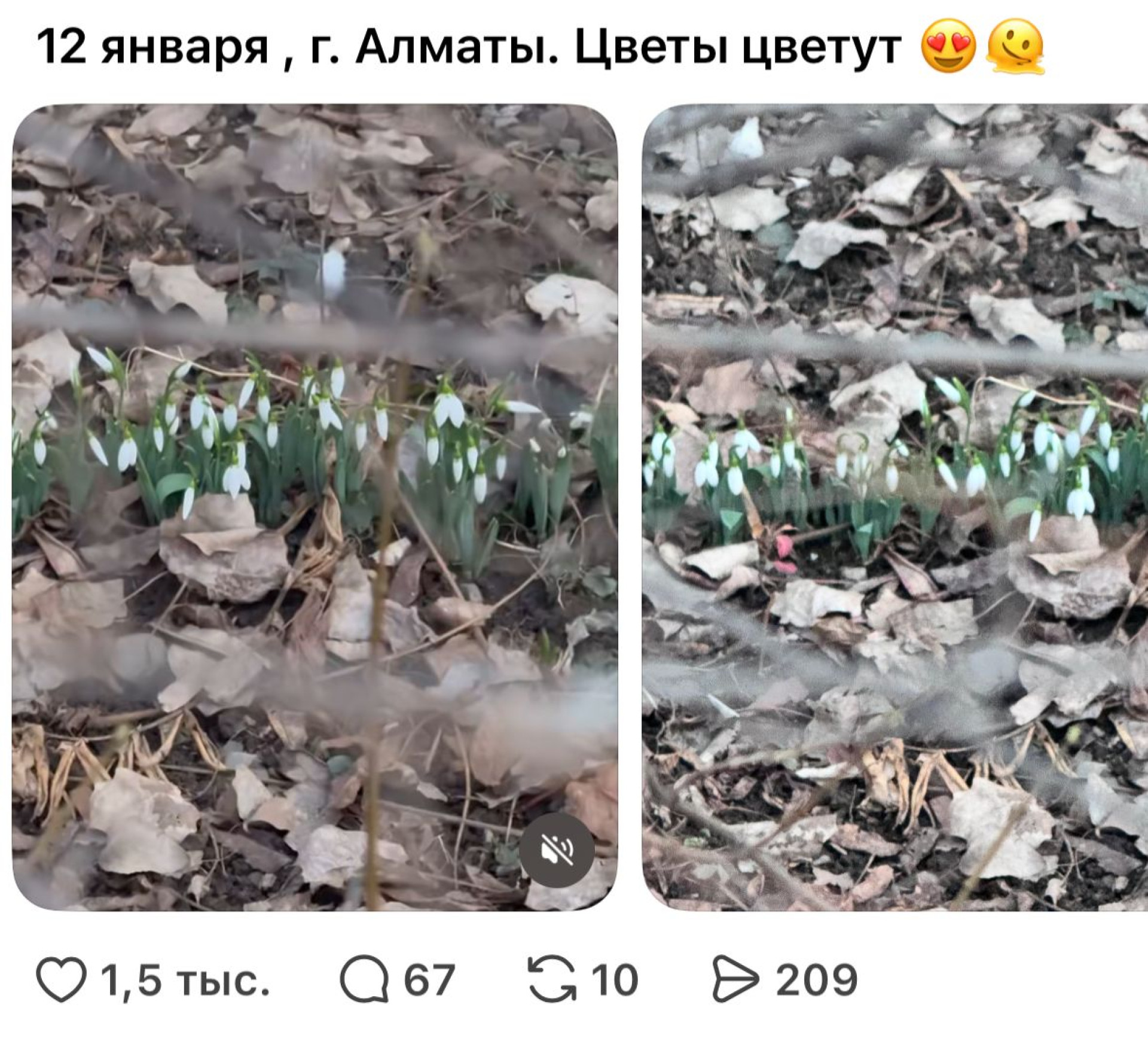 Ситуация привлекла внимание после публикации алматинки в Threads, где она поделилась фотографиями бутонов, пробивающихся сквозь сухую траву. Пост собрал 1,5 тысячи лайков и множество комментариев.