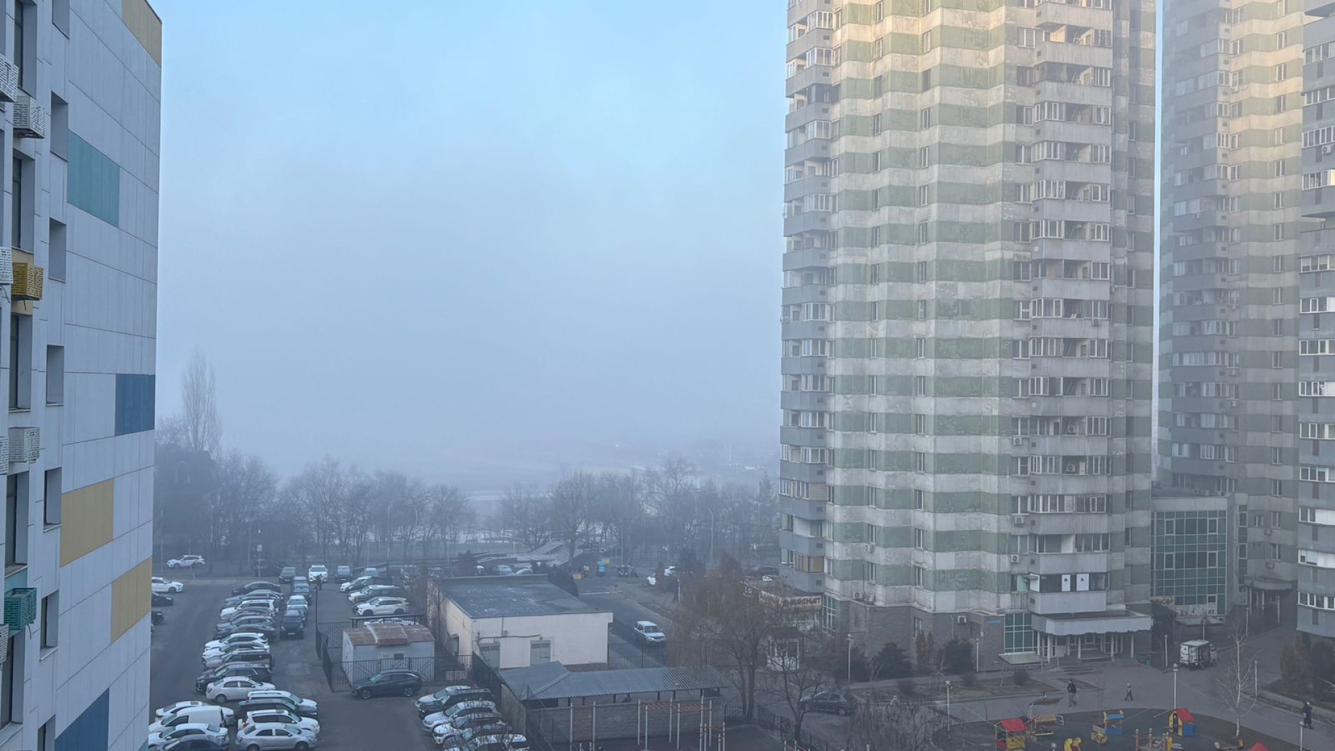 По информации от местных жителей, особенно плотный туман зафиксирован в нижней части города, в районе микрорайона Сайран и на прилегающих к нему улицах.