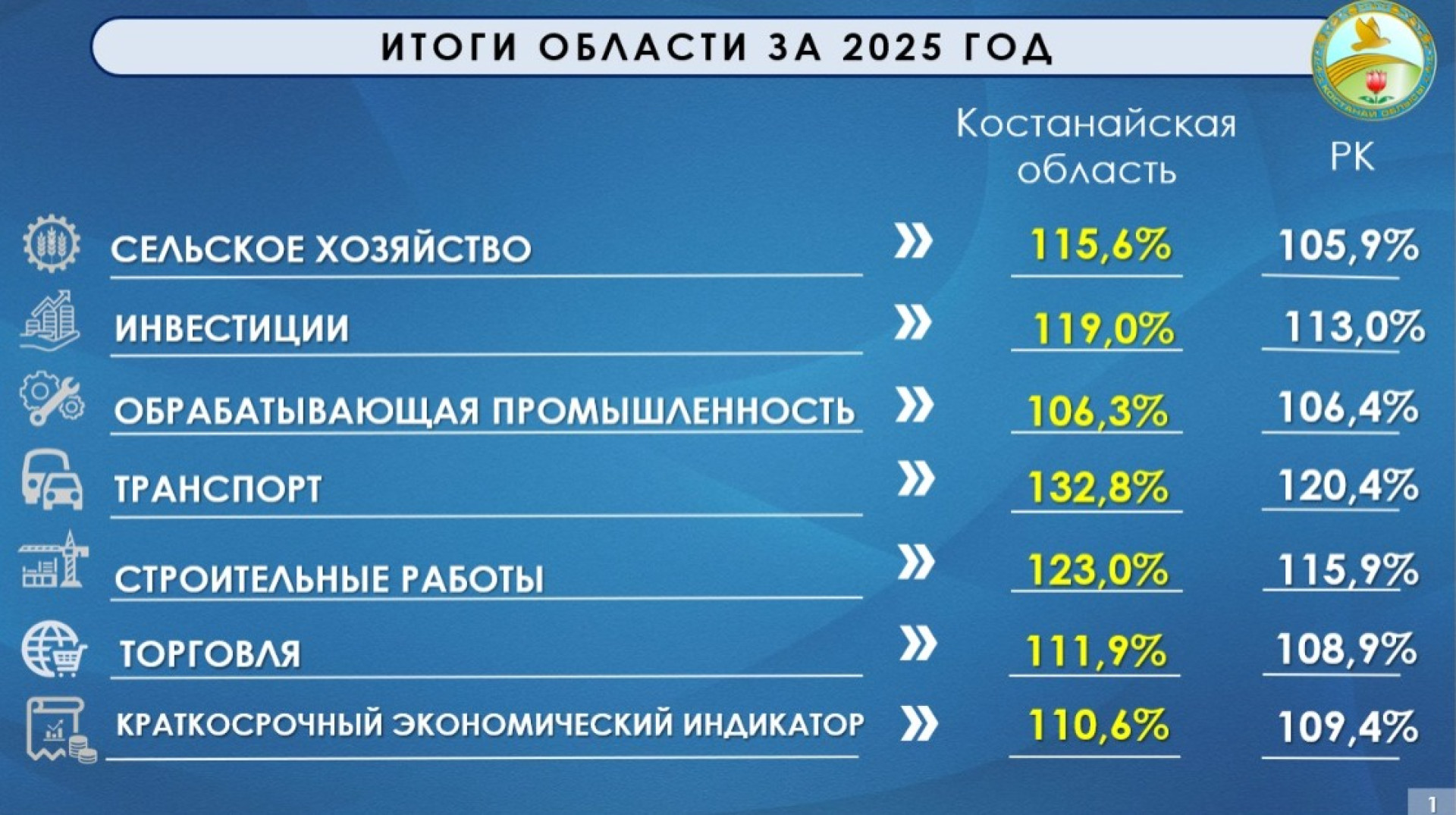 "Это подтверждает краткосрочный экономический индикатор, который составил 110,6 процента, тогда как по стране он составляет 109,4 процента", — добавил аким области.