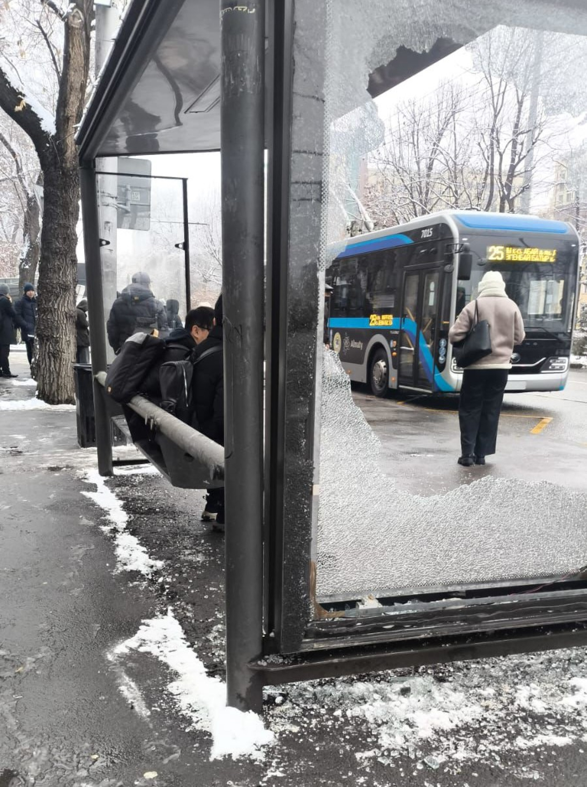 Акимат Алмалинского района Алматы отреагировал на пост, отметив, что остановка была повреждена 12 февраля в 03:30.