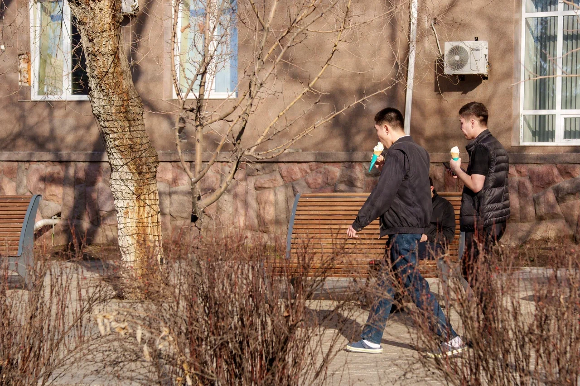 Утром температура воздуха в Алматы начала стремительно расти и уже к полудню достигла +20 градусов. На улицах стало заметно больше людей, парки и скверы наполнились гуляющими.