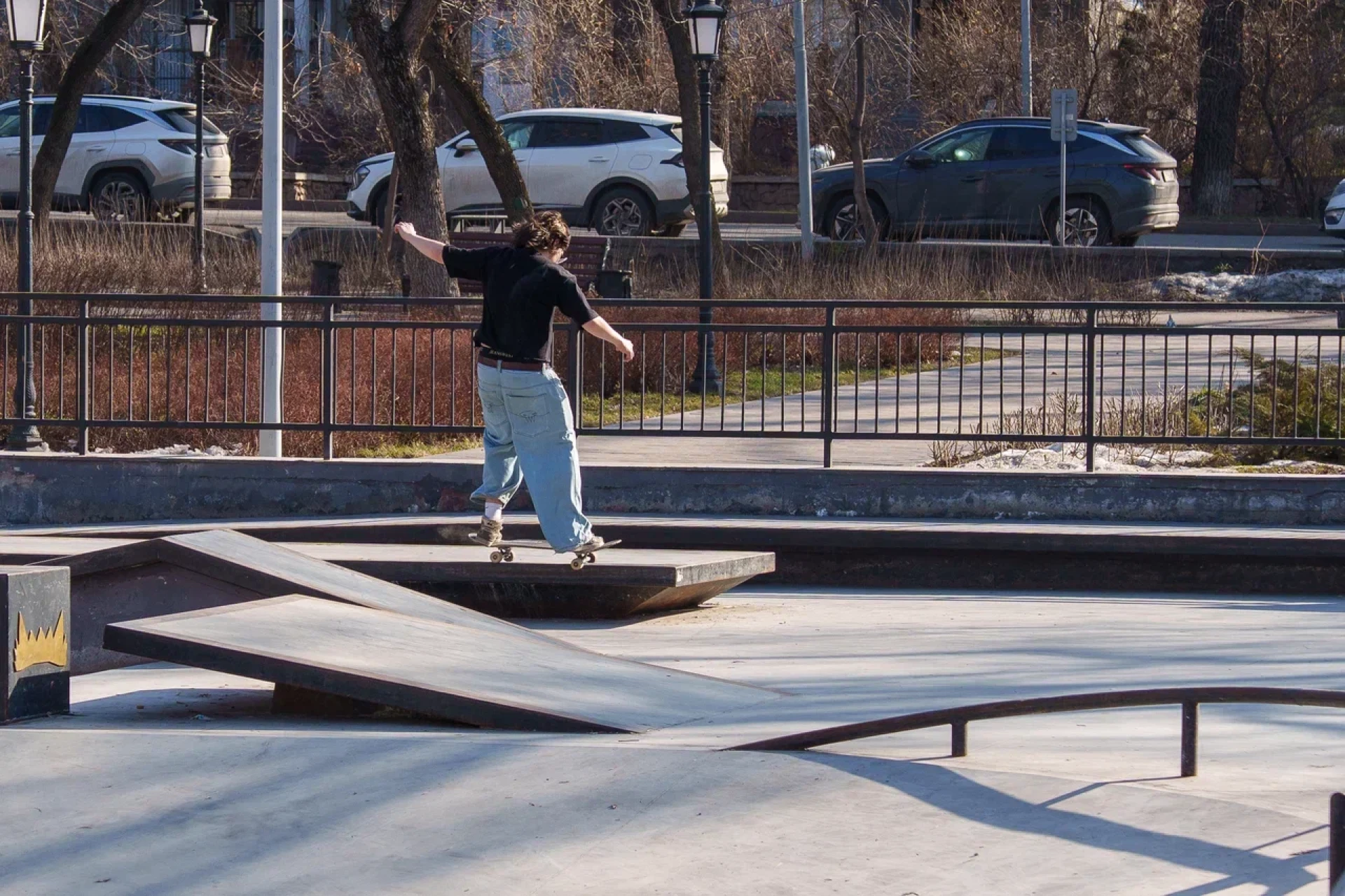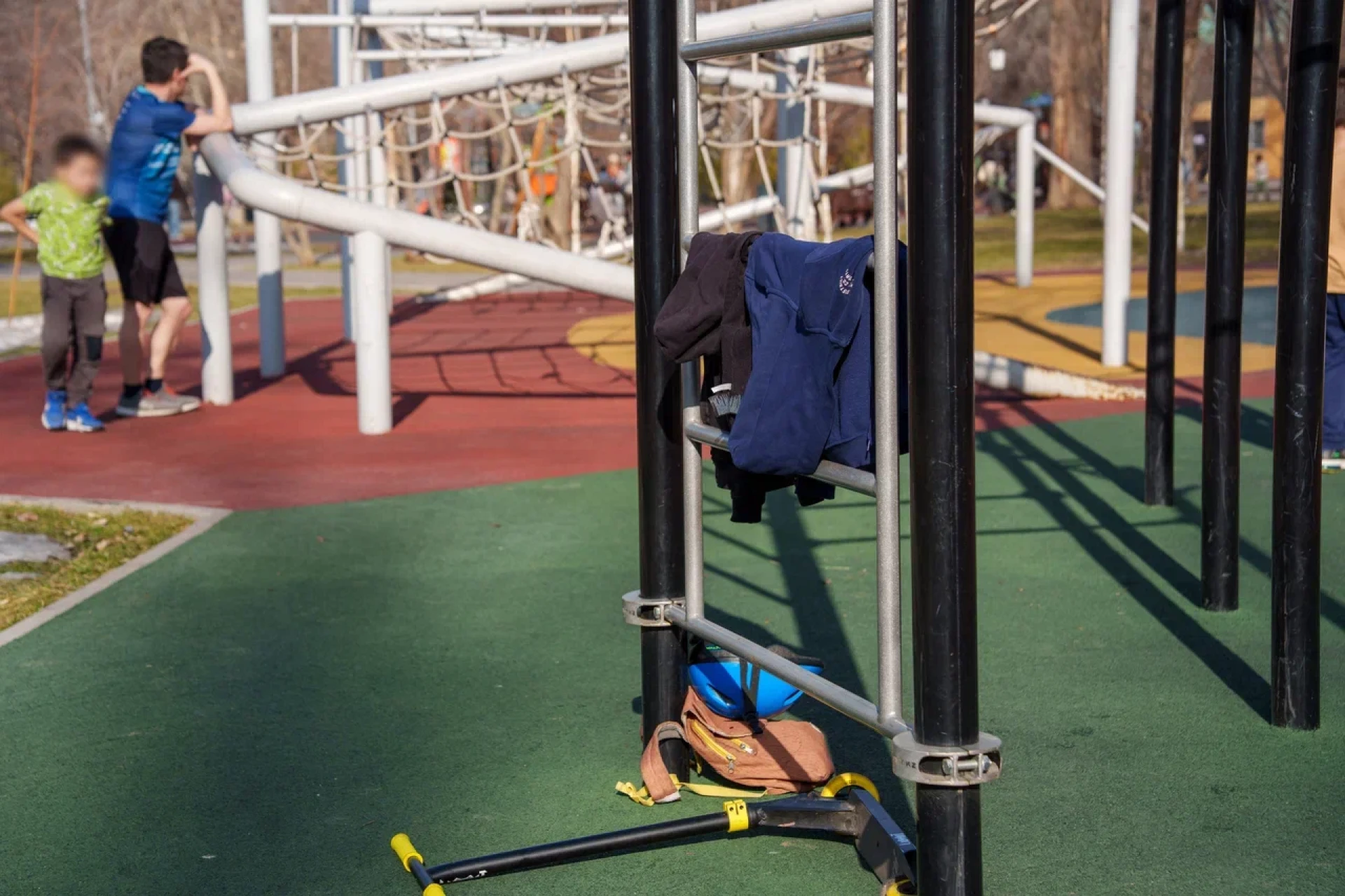 На детских площадках царила летняя атмосфера. Дети и подростки развлекались на турниках, качелях и в скейт-парках, а их куртки и толстовки висели рядом – на перилах и спинках скамеек.