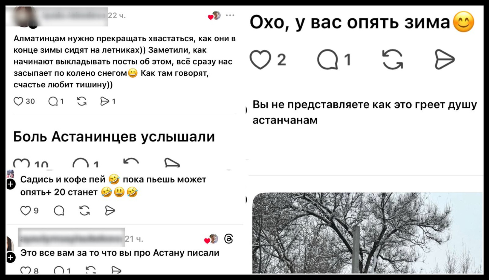 Недавнее возвращение зимы в Алматы вызвало новую волну шуток в социальных сетях. После публикаций алматинцев с солнечными террасами, горожане записали ироничное "извинение" перед жителями северных регионов.