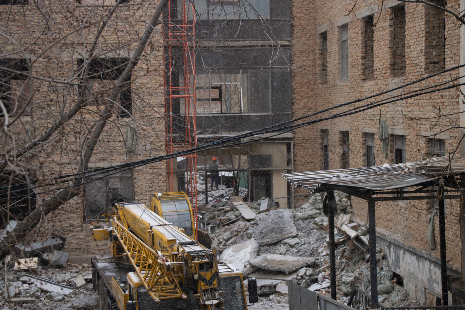 Реконструкция гимназии № 56 в Алматы продолжается. Снято 26 февраля 2026 года. Фото: ©️ Tengrinews.kz / Никита Данилин