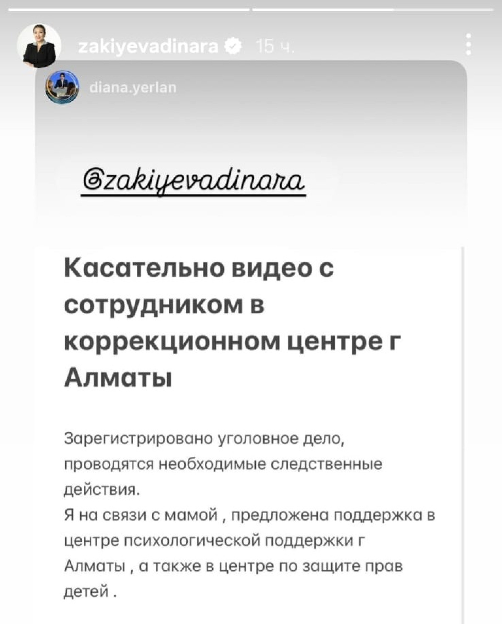 Детский омбудсмен Динара Закиева отреагировала на появившиеся видеоролики, предложив матери пострадавшего мальчика помощь в Центре психологической поддержки и Центре по защите прав детей.