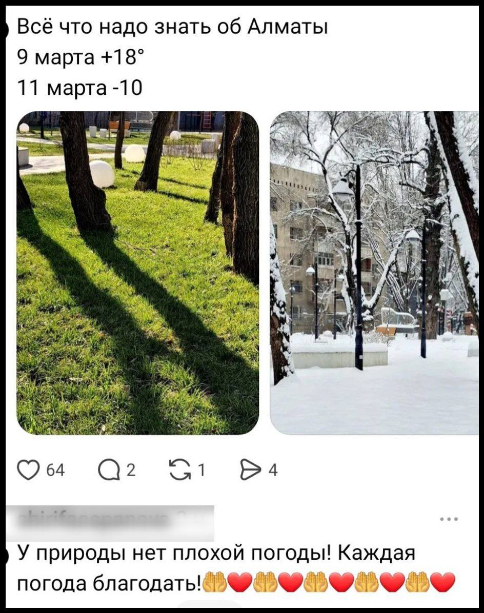 Сильный снегопад, накрывший Алматы, стал одной из тем обсуждения в социальных сетях. Горожане и гости мегаполиса активно делятся фотографиями заснеженных улиц и шутят, что в календаре наступило "39 февраля" — настолько затянулась зима.