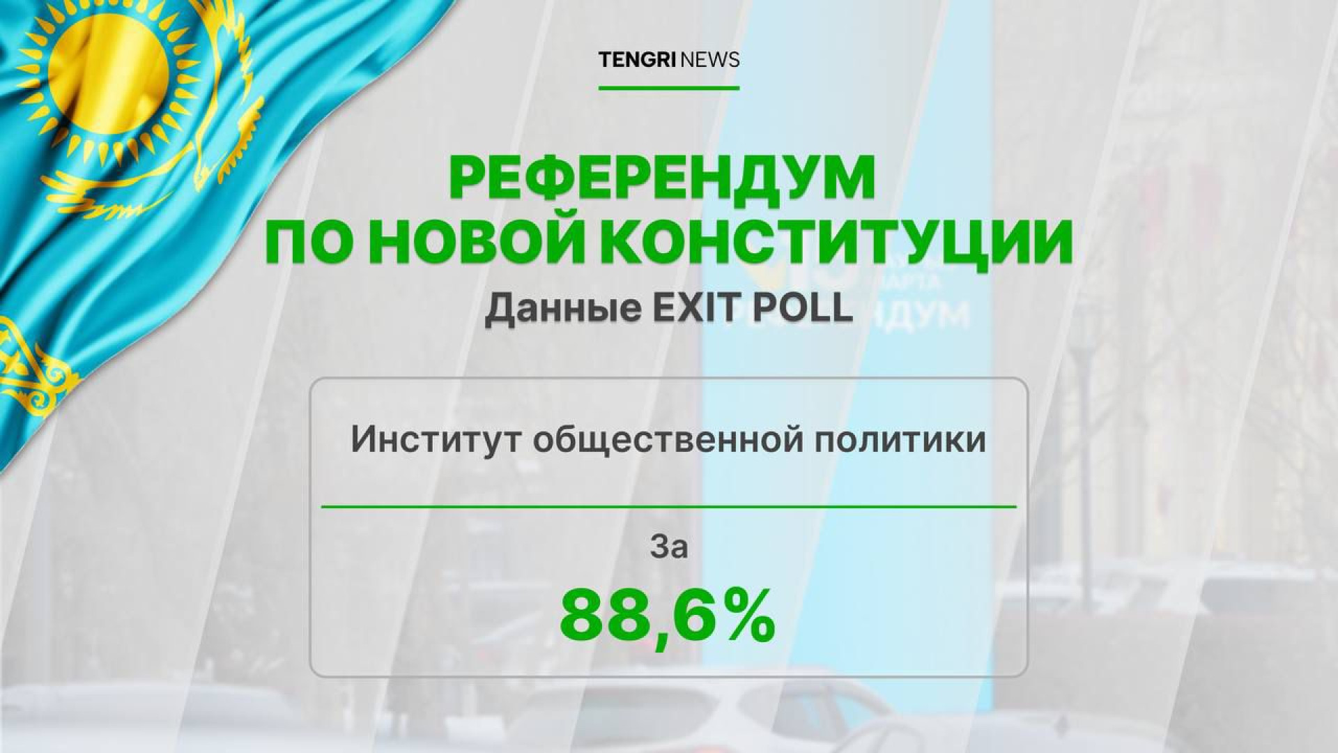 Результаты экзитпола Института общественной политики показали, что новую Конституцию поддержали 88,6 процента участников опроса (опросили 24 тысячи человек). Явка составила 72,1 процента.