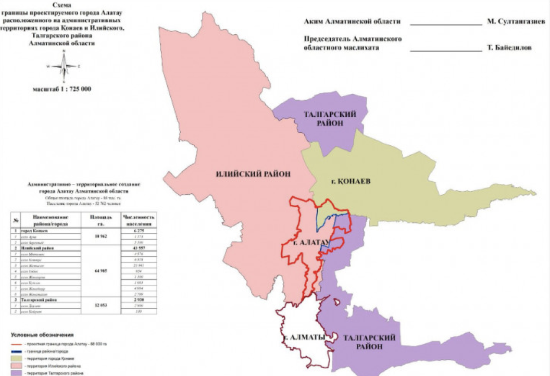 Изменены границы Илийского и Талгарского районов, а также города Конаева — часть территорий вошла в состав нового города.