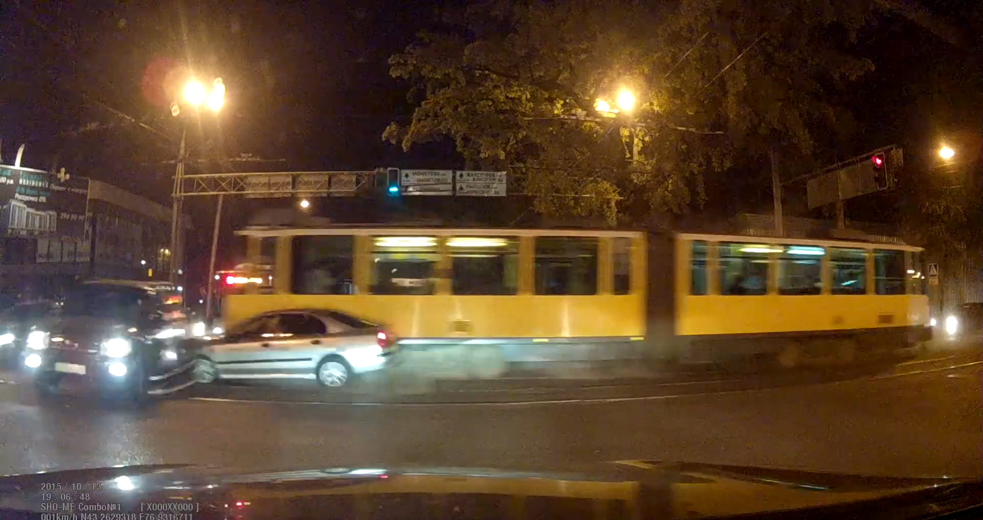 Авария с трамваем в Алматы, октябрь 2015 года. Стоп-кадр из видео