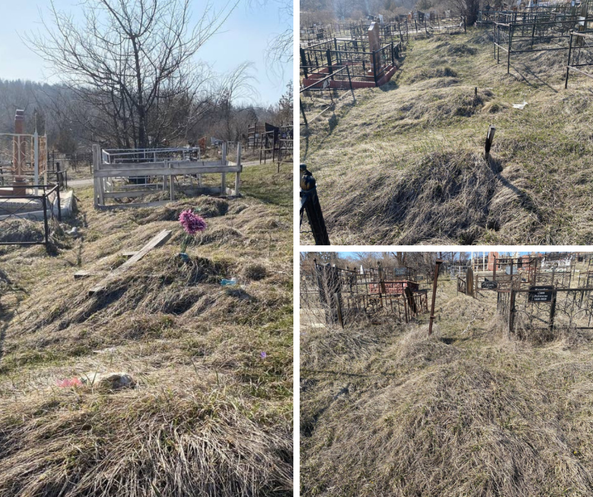 А на некоторых могилах уже нет даже столбиков с номерками. Это может означать, что захоронение настолько давнее, что деревяшка рассыпалась или провалилась под землю.